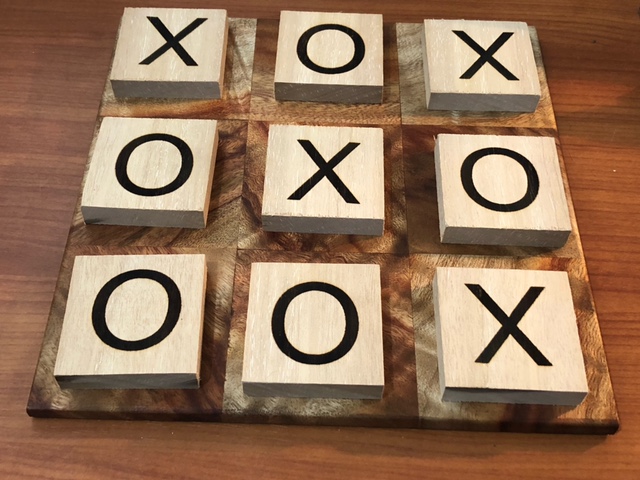 This is a Camphor Laurel board with Silver Ash game pieces. You and your kids will enjoy hours of fun playing Noughts and Crosses on this beautiful board. The board is 22cm, made with 9 pieces of Camphor Laurel joined together. The board and pieces are coated with food safe bees wax/mineral oil so are resistant to moisture. The Os and Xs are laser etched into the timber.