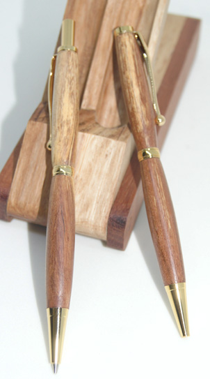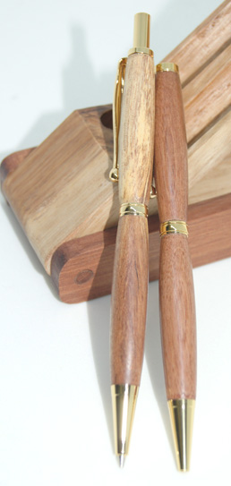 #9 Pen & Pencil set in a Tasmanian Blue Gum case. The mixture of heart and sapwood provide a nice appearance to this pen and pencil. $98
