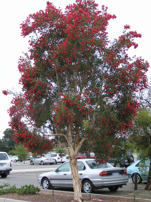 This tree is most commonly known as broad-leaved paperbark, and is a plant in the myrtle family Myrtaceae, native to woodlands, swamps and streams in monsoonal areas of northern Australia and New Guinea. It is usually a small tree with an open canopy, papery bark and spikes of cream, yellow, green or red flowers.