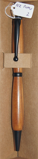 #2 The warmth of colour in the Rimu and matt black hardware contrast to create an attractive writing instrument. Left a little larger at the lower end for a more relaxed grip for larger hands. $47.95 |