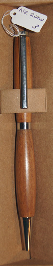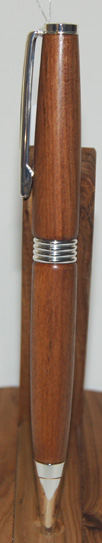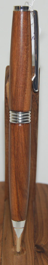 #3 The warmth of colour in the Rimu and chrome hardware contrast to create an attractive writing instrument. Designed to reduce writing strain, the lower section has a gentle curve and slightly wider body than I usually make. $47.95 |
