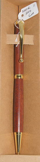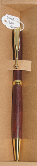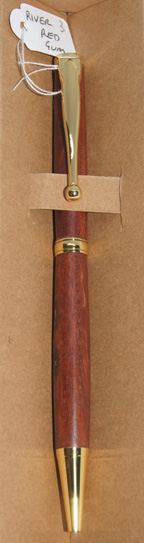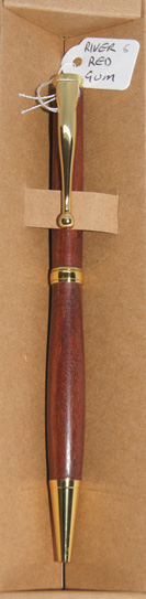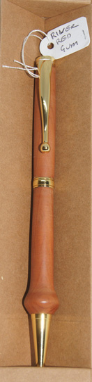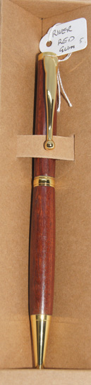 Each River Red Gum stylish ball pen with gold hardware and slim waist, comes protected in an environmentally-friendly recycled cardboard box with laser engraved branding.