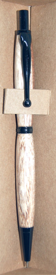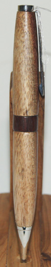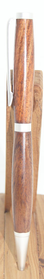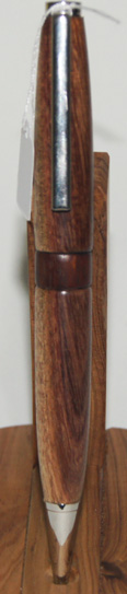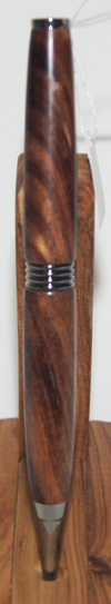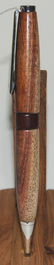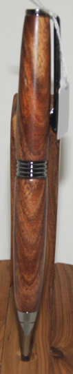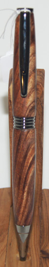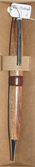 #6 This pen has chrome hardware, but for a touch of interest it has a River Red Gum waist band which works well with the darker shades in the pen's timber. The colurs in this pen remind me of those seen on rainbow trout. Write in style with this beautiful instrument. $49.95 |