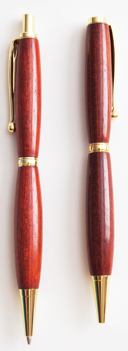 #3 Write in style - This beautiful pen/pencil set will feel great in your hand with good weight, and look the part on your office desk with its attractive red hardware that compliments the colour of the timber. Slowly rotating the instruments in sunlight will reward you with an iridescent light show.
