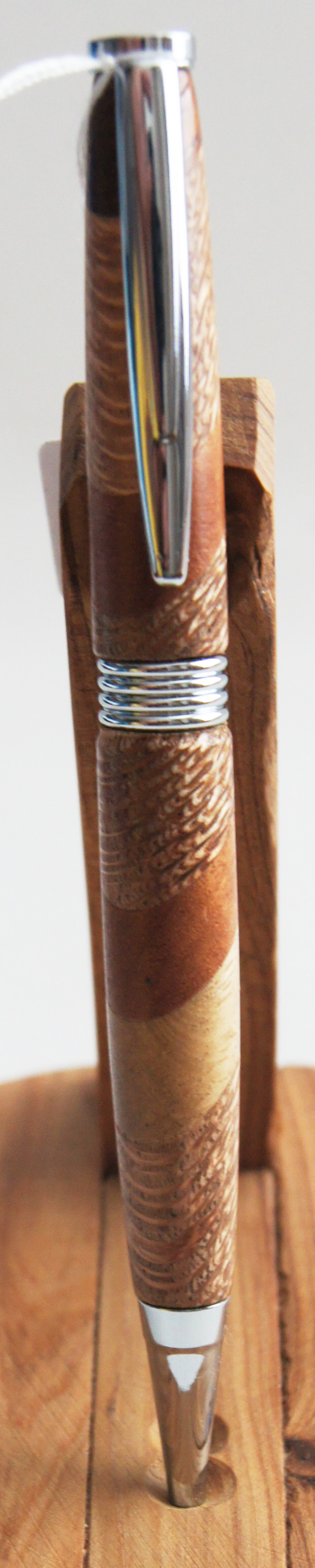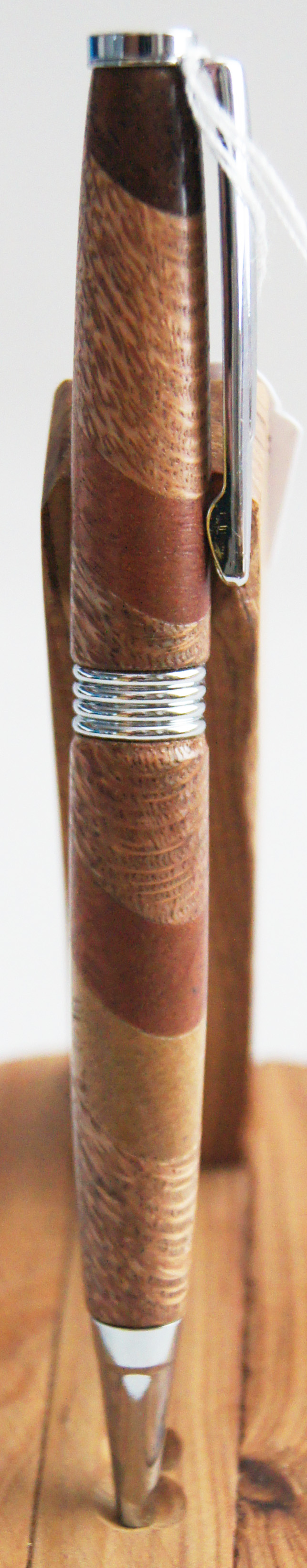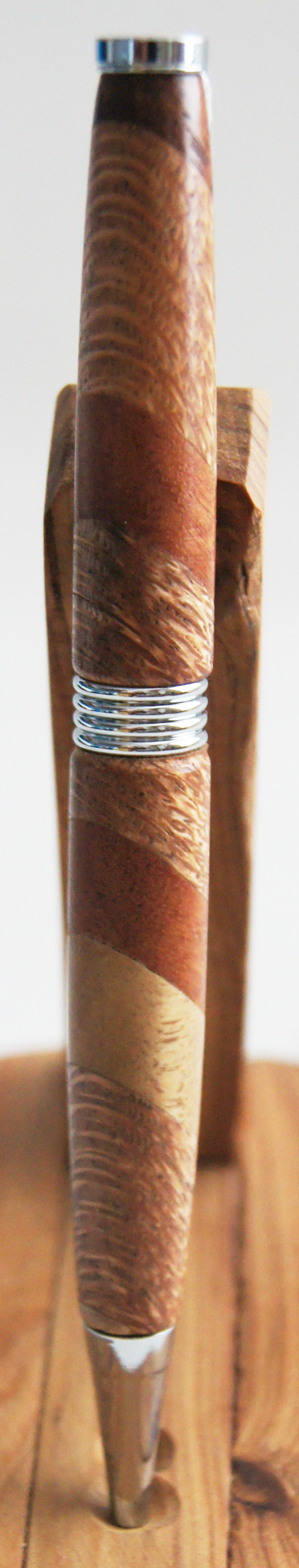 For those who like a little variety, this pen is made using a mixture of timbers glued together and prepared into diagonal cut blanks to create interest.