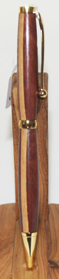 #5 This stylish pen is made with Mandarin (fruit tree) sandwiched in Jarrah timber. Gold hardware and stylish shaping make this an attractive pen to look at, and comfortable to use. $45.95 |