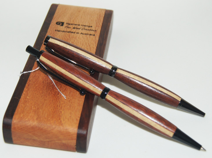 #4 This stylish pen is made with Jarrah and Mandarin (fruit tree). Black hardware and stylish shaping make this an attractive pen to look at, and comfortable to use. $45.95 |