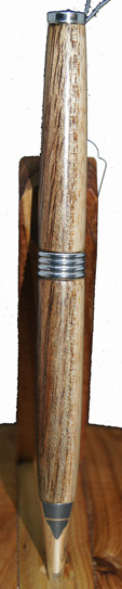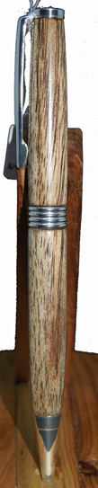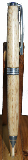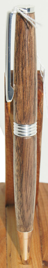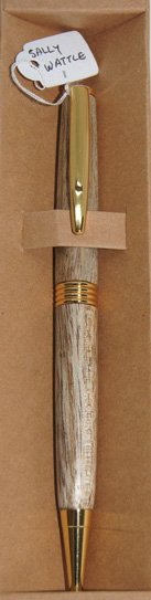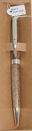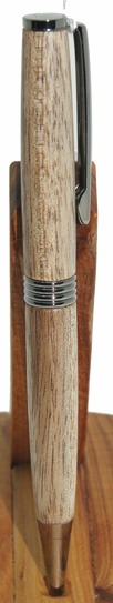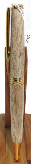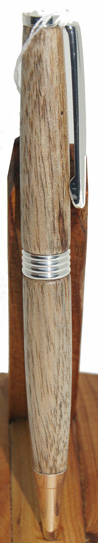 #4 This attractive pen is made from the sapwood bordering with the heartwood, hence the transition to brown showing on the one side of the pen. The silver hardware is an elegant contrast to the timber. $47.95 |
