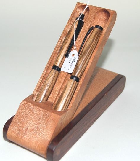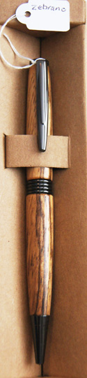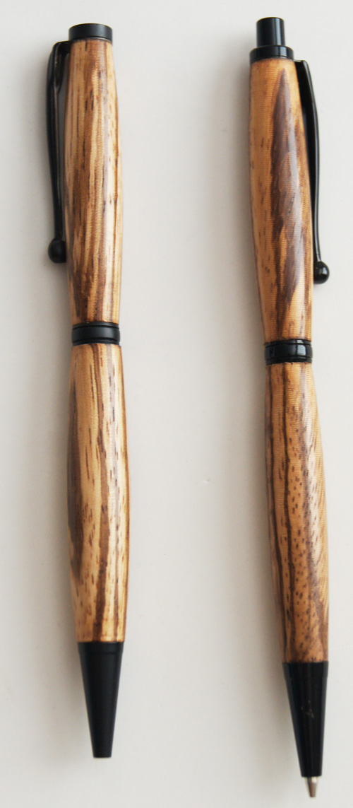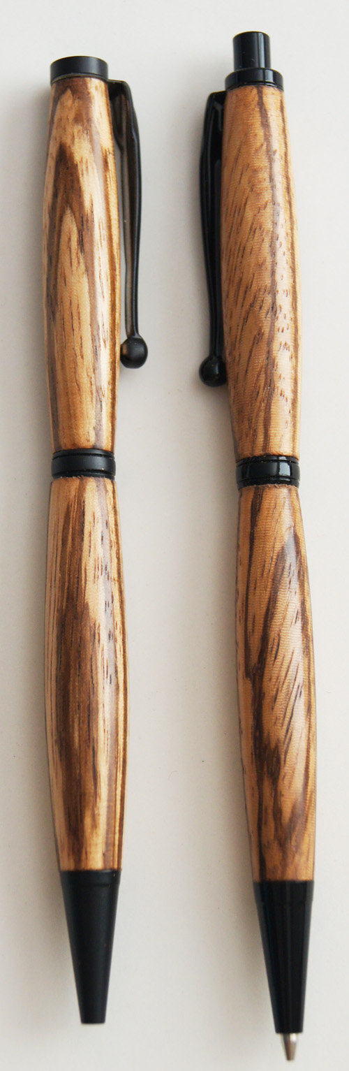 #2 Pen & Pencil set. The slim waist and black hardware work together well to accentuate the stunning dark stripes in the timber. The set comes in a custom-made natural timber presentation box, hand-made from Silky Oak with Blackwood sides. $110 |