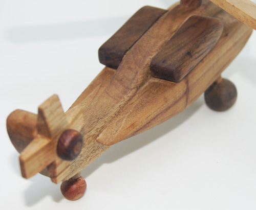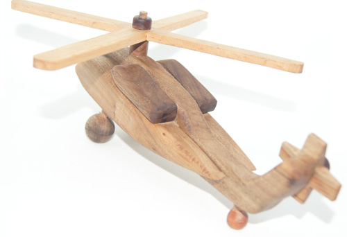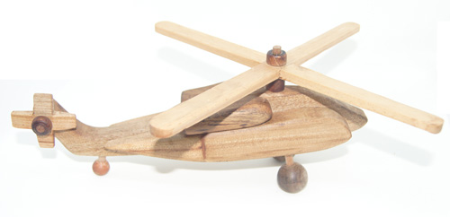 #3 This Blackhawk helicopter will provide many hours on enjoyment. It's made from Camphor Laurel and Blackwood, with Radiata Pine main rotor an English Oak rear balance ball. The main and tail rotors move. Main rotor blades are 26cm long, total length is 33cm and height is 12cm.