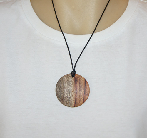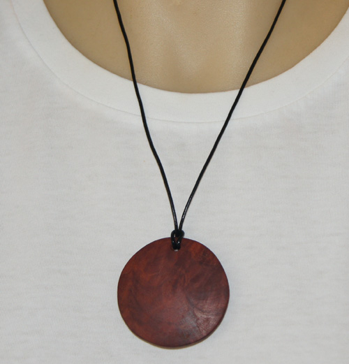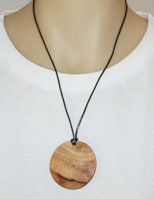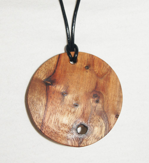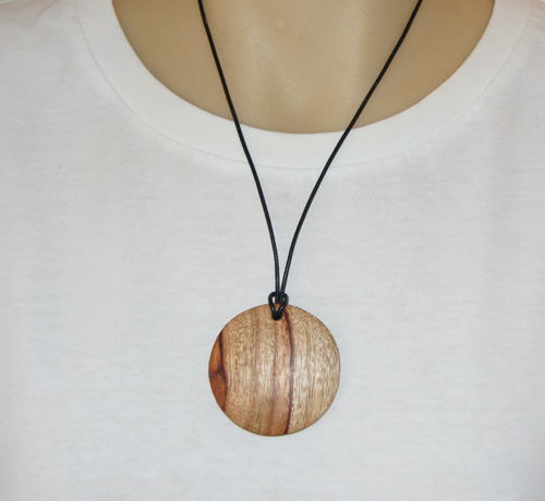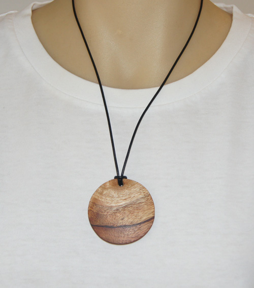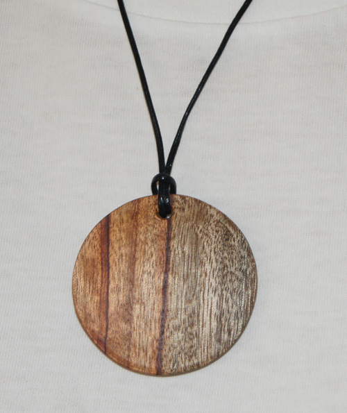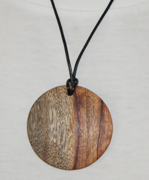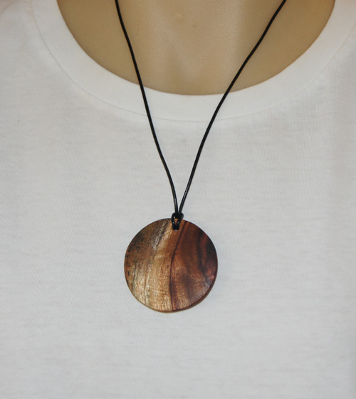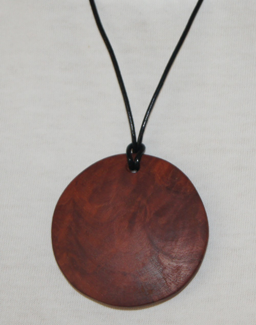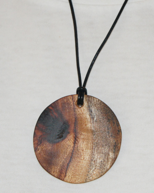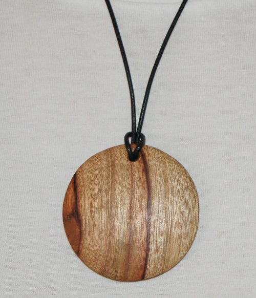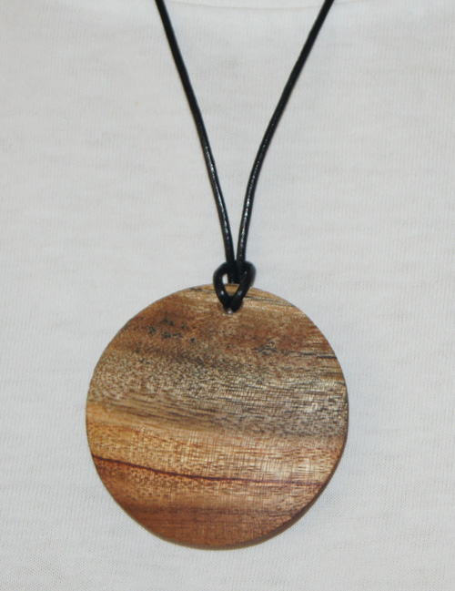 #20 Camphor Laurel Pendant 5cm handcrafted disc suspended on a 63cm leather cord and closed with a lobster clasp. $20 |